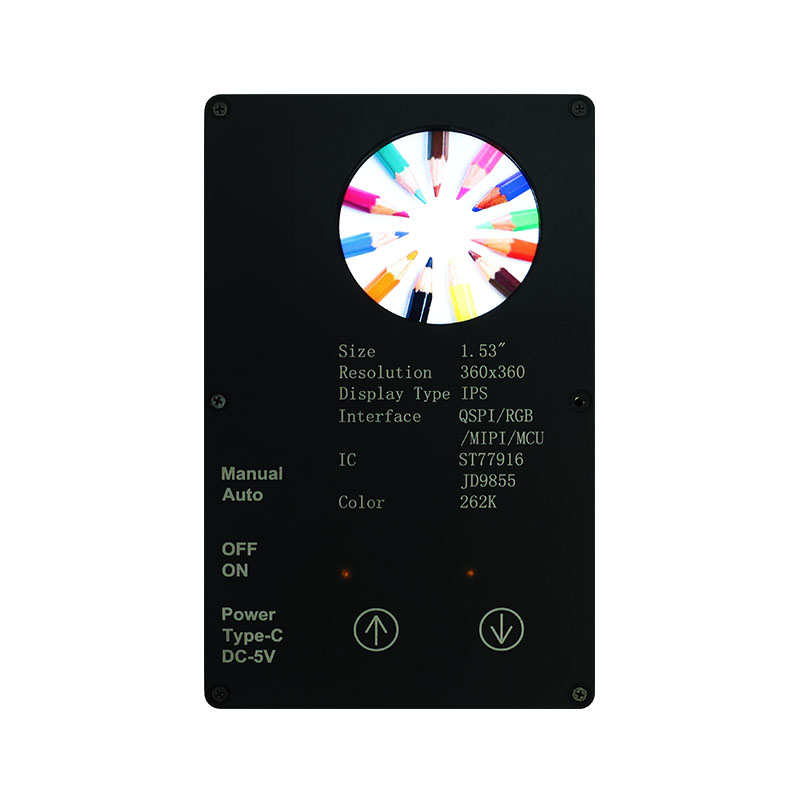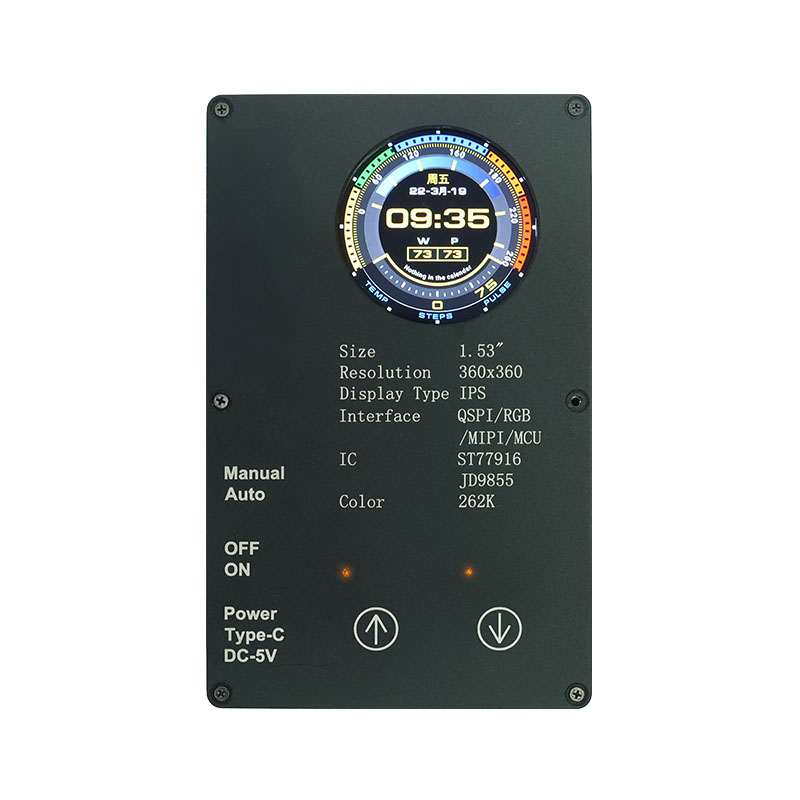यो कस्टम डिस्प्लेमा ३६०×३६० उच्च रिजोलुसन, सबै हेर्ने कोण, र ४०० cd/m² उच्च चमक रहेको छ। औद्योगिक-ग्रेड सञ्चालन तापमान दायरा (-20 ℃ ~ 70 ℃) संग, यसले माइट हटाउने यन्त्रहरू र जुसरहरू जस्ता स्मार्ट गृह अनुप्रयोगहरूमा स्पष्ट र स्थिर कार्यसम्पादन सुनिश्चित गर्दछ। QSPI इन्टरफेस र ST77916 ड्राइभ IC ले उच्च-गति डेटा स्थानान्तरण सक्षम पार्छ, जबकि यसको कम्प्याक्ट मोड्युल साइज (40.46×41.96×2.16mm) ले स्पेस दक्षतालाई अधिकतम बनाउँछ।
