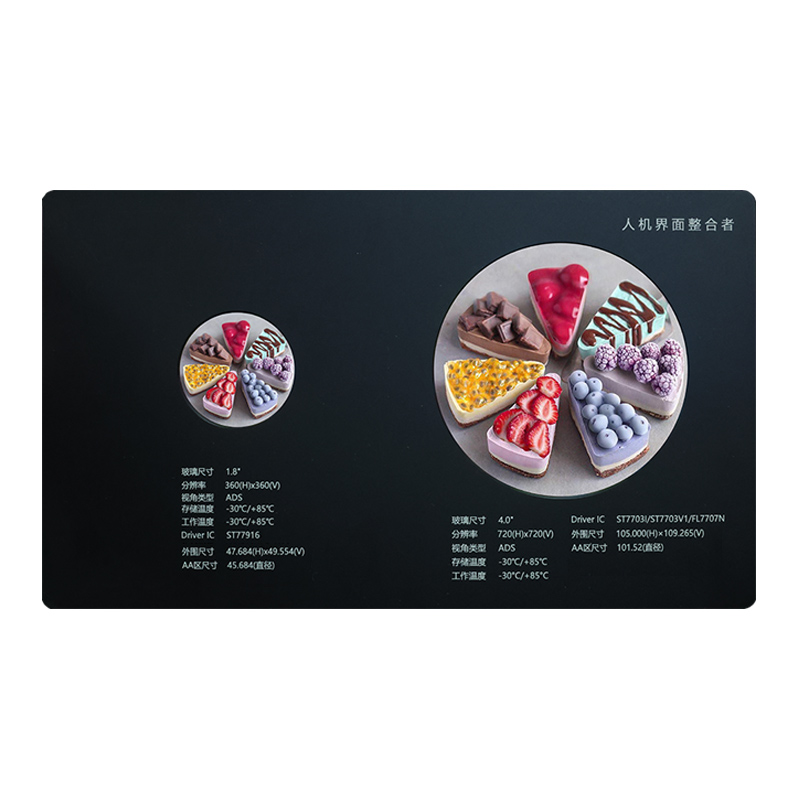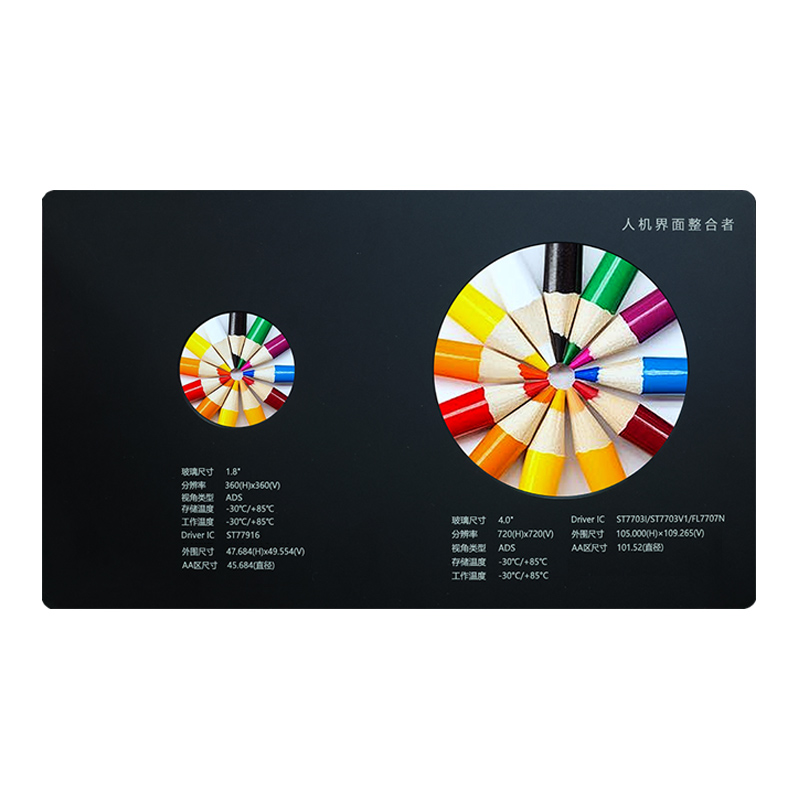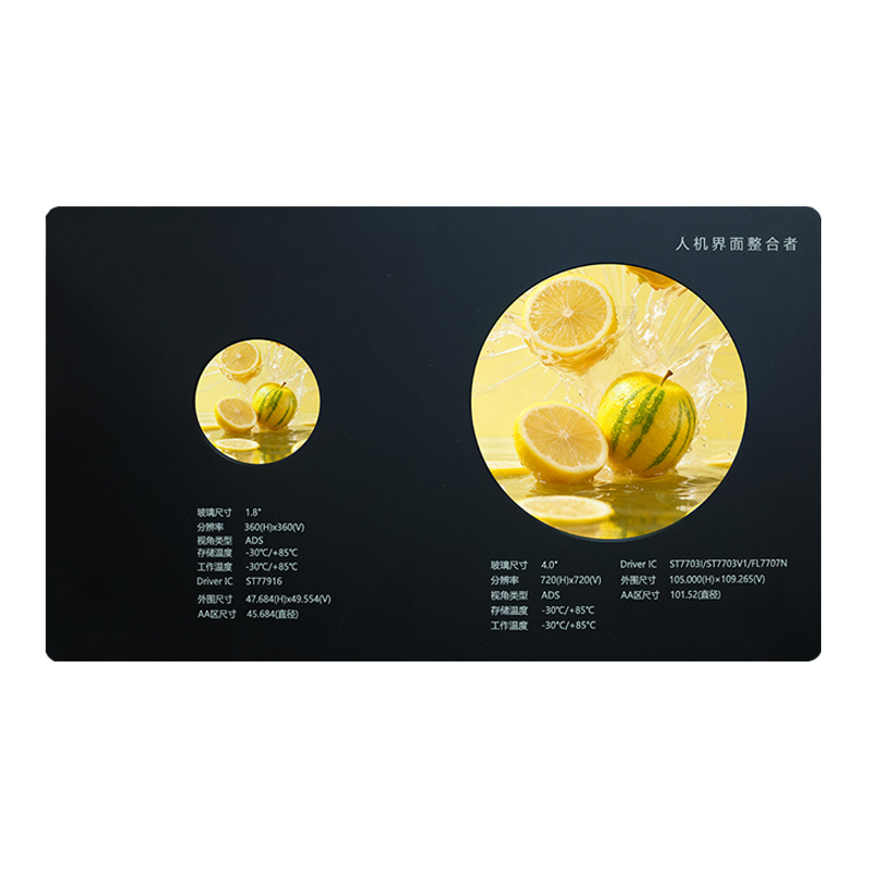 यो ४.० इन्चको TFT गोलाकार LCD डिस्प्ले एआई पेट रोबोट र अटोमोटिभ इन्स्ट्रुमेन्ट क्लस्टरहरूको लागि डिजाइन गरिएको हो। यसको 720x720 उच्च रिजोलुसन एडीएस टेक्नोलोजीसँग जोडिएकोले आश्चर्यजनक दृश्यहरू प्रदान गर्दछ। चरम तापमान (-30 ℃ देखि + 85 ℃) को प्रतिरोधी र धेरै चालक आईसी विकल्पहरू प्रदान गर्दै, यसले उत्कृष्ट अनुकूलन प्रदर्शन लचिलोपन प्रदर्शन गर्दछ। ठूलो 101.52mm गोलाकार एए क्षेत्र सहज जानकारी प्रदर्शन सुनिश्चित गर्दछ। यो उच्च प्रदर्शन LCD मानव-मेसिन अन्तरक्रिया अपील बढाउनको लागि आदर्श समाधान हो।