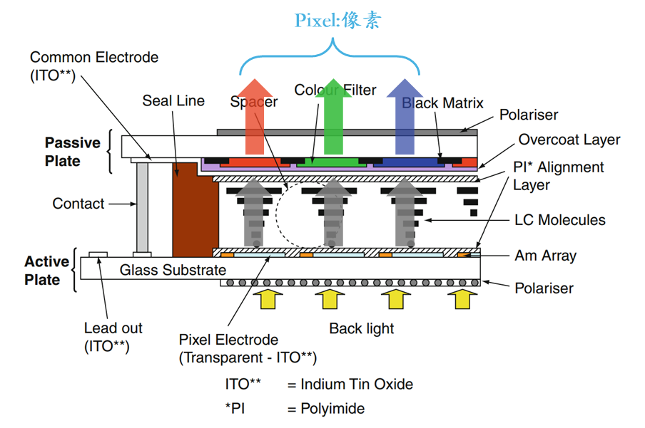 TFT arrays को सन्दर्भमा, अर्धचालक च्यानल सामाग्री को विकास को प्रदर्शन प्रदर्शन मा सुधार को सीधा संचालित छ। प्रारम्भिक अमोर्फस सिलिकन (a-Si:H) देखि कम-तापमान पोलिक्रिस्टलाइन सिलिकन (LTPS, 308nm XeCl एक्सिमर लेजर एनेलिङ प्रक्रिया प्रयोग गरी निर्मित) र त्यसपछि अक्साइड सेमीकन्डक्टरहरू (जस्तै a-IGZO) सम्म, क्यारियर गतिशीलतामा निरन्तर वृद्धिले उच्च रिजोल्युसनलाई समर्थन गर्न सक्षम गरेको छ। तरल क्रिस्टल तह सामग्रीहरूमा आविष्कारहरू समान रूपमा महत्त्वपूर्ण छन्, विभिन्न पङ्क्तिबद्ध विधिहरू (जस्तै TN ट्विस्टेड नेमेटिक, IPS इन-प्लेन स्विचिङ, र VA ठाडो पङ्क्तिबद्धता) फरक दृश्य कोणहरू, प्रतिक्रिया समय, र कन्ट्रास्ट विशेषताहरू प्रदान गर्दै।