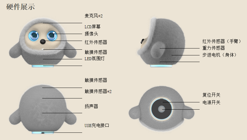 अन्तर्क्रियात्मक फोकस डिजाइन: यसको "आँखा" को रूपमा 4.28-इन्च LCD उच्च-परिभाषा डिस्प्ले फिचर गर्दछ, डुअल-स्क्रिन विषम डिस्प्लेलाई समर्थन गर्दछ, कोर भावनाहरू र स्थिति जानकारीको लागि प्राथमिक सञ्झ्यालको रूपमा सेवा गर्दछ।