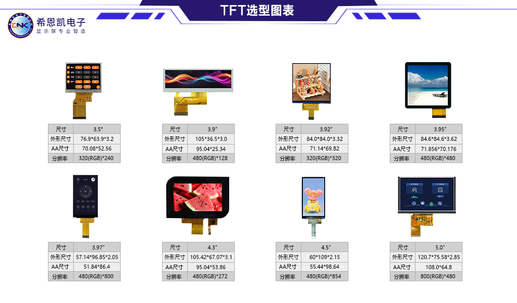 कलर स्क्रिन TFT मोड्युलको पक्षमा, कम्पनीले ग्लास काट्ने, ड्राइभर आईसी बन्डिङ र ब्याकलाइट एसेम्ब्लीमा पोलाराइजर एट्याचमेन्टदेखि पूर्ण उत्पादन प्रक्रियामा महारत हासिल गरेको छ। यसको उत्पादनहरूले विभिन्न ड्राइभिङ विधिहरू जस्तै RGB इन्टरफेस, MCU इन्टरफेस, र SPI इन्टरफेस समर्थन गर्दछ, र लचिलो रूपमा विभिन्न मुख्य नियन्त्रण प्लेटफर्महरूमा अनुकूलन गर्न सक्छ।